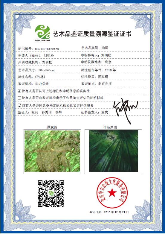 艺+1 艺术品鉴证质量溯源鉴证证书