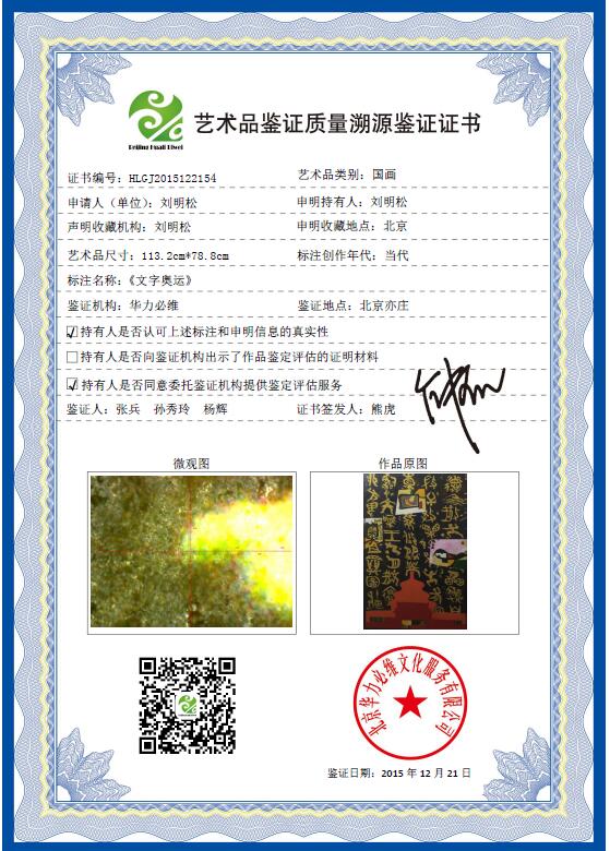 艺+1 艺术品鉴证质量溯源鉴证证书