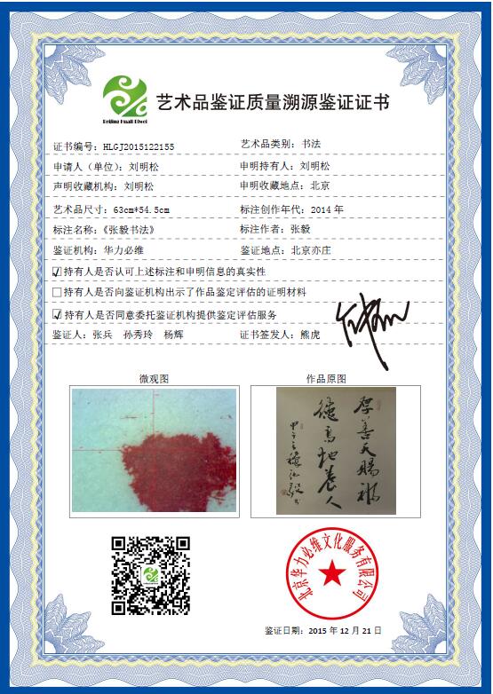 艺+1 艺术品鉴证质量溯源鉴证证书