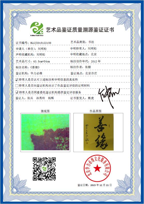 艺+1 艺术品鉴证质量溯源鉴证证书