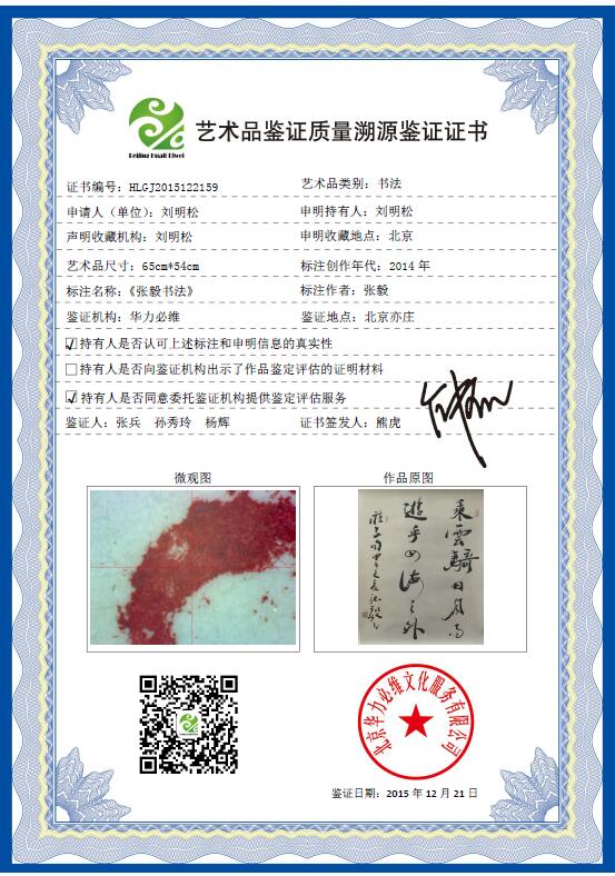 艺+1 艺术品鉴证质量溯源鉴证证书