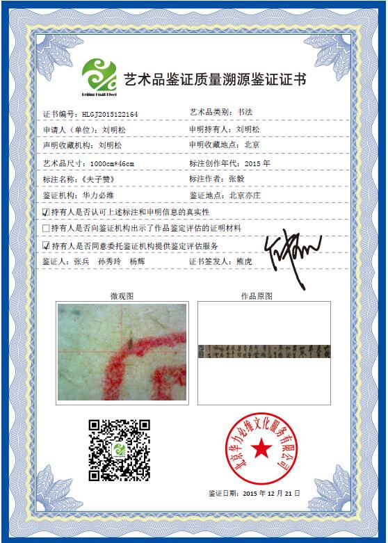 艺+1 艺术品鉴证质量溯源鉴证证书
