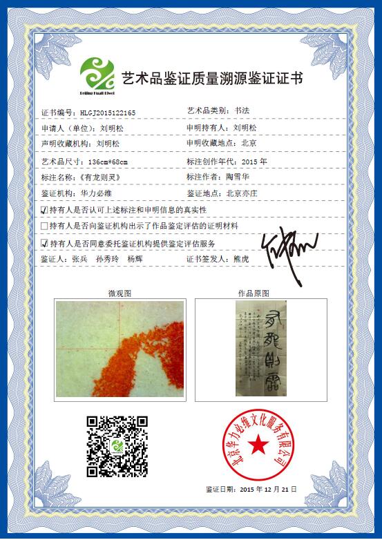 艺+1 艺术品鉴证质量溯源鉴证证书