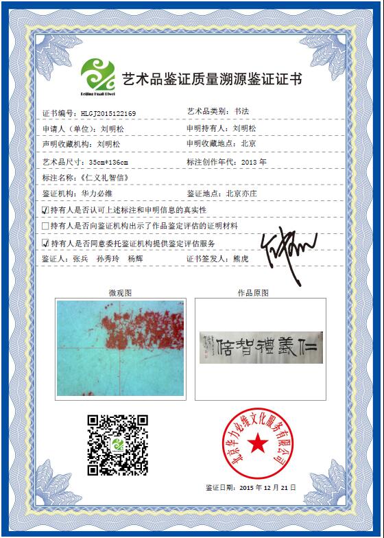 艺+1 艺术品鉴证质量溯源鉴证证书