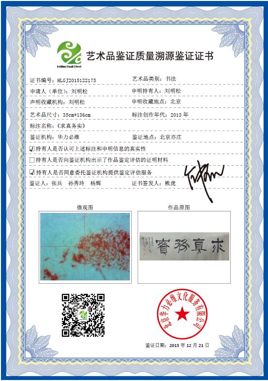 艺+1 艺术品鉴证质量溯源鉴证证书