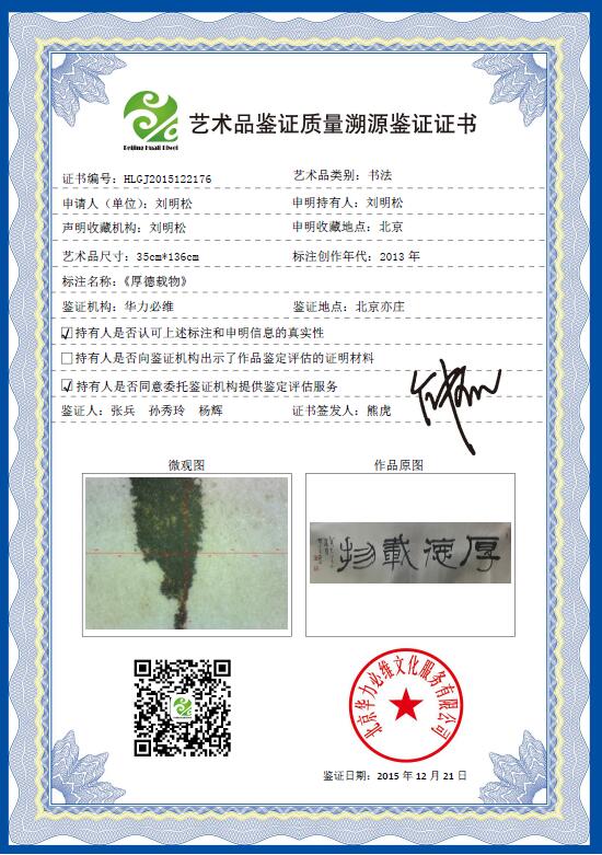 艺+1 艺术品鉴证质量溯源鉴证证书