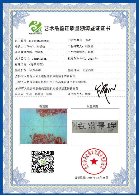 艺+1 艺术品鉴证质量溯源鉴证证书