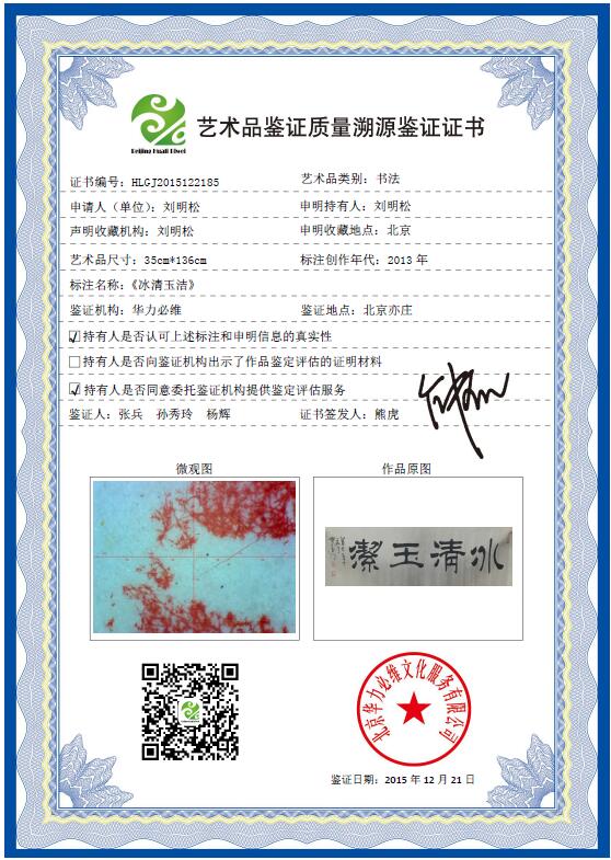 艺+1 艺术品鉴证质量溯源鉴证证书