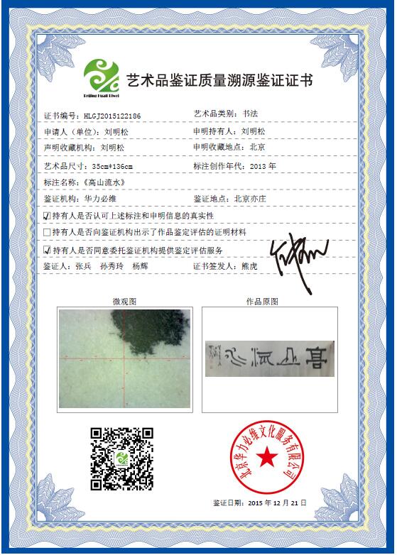 艺+1 艺术品鉴证质量溯源鉴证证书