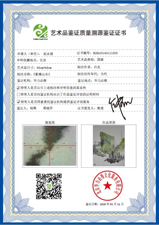 艺+1 艺术品鉴证质量溯源鉴证证书