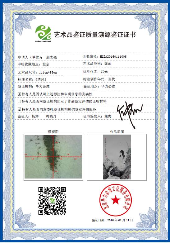 艺+1 艺术品鉴证质量溯源鉴证证书