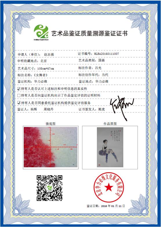 艺+1 艺术品鉴证质量溯源鉴证证书
