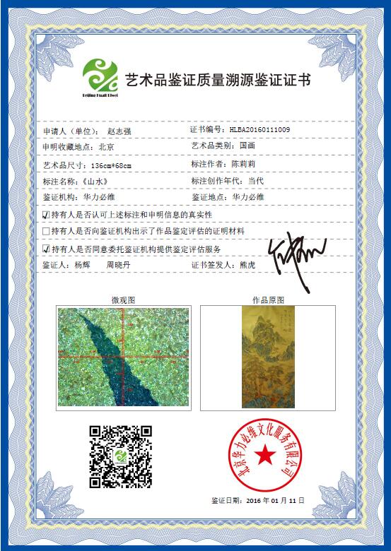 艺+1 艺术品鉴证质量溯源鉴证证书