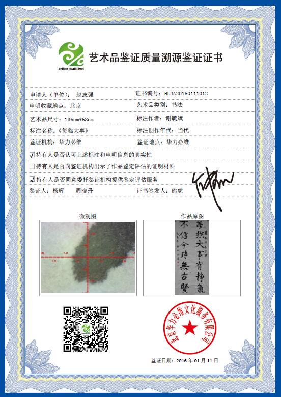 艺+1 艺术品鉴证质量溯源鉴证证书