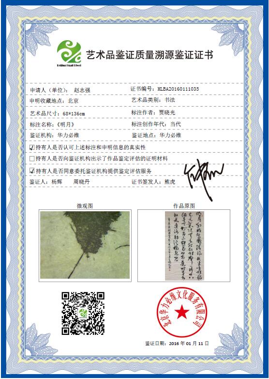 艺+1 艺术品鉴证质量溯源鉴证证书