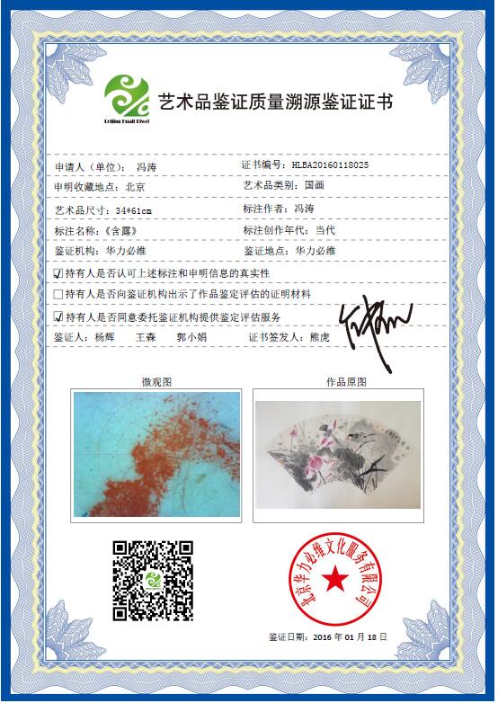 艺术品鉴证质量溯源鉴证证书