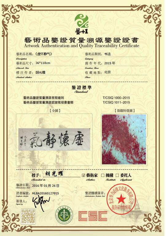 证书名称 艺术品鉴证质量溯源鉴证证书