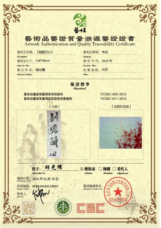 艺术品鉴证质量溯源鉴证证书