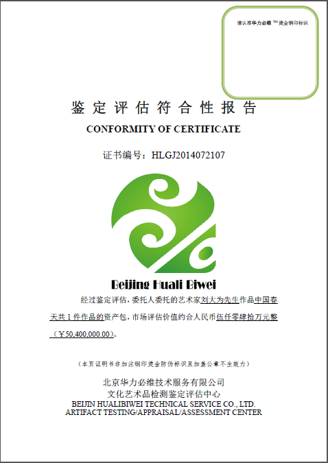1. 作品描述 2. 作品介绍 3. 作品市场行情分析报告 4. 作品价格影响因子分析 4.1 艺术品股权概要 4.2 艺术品股权价格波动的市场因素分析 4.3 作品股权价格风险提示 5. 鉴定评估结论 |