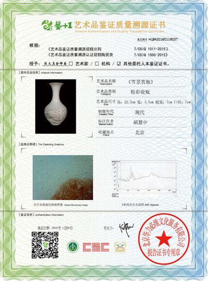 艺术品鉴证质量溯源鉴证证书
